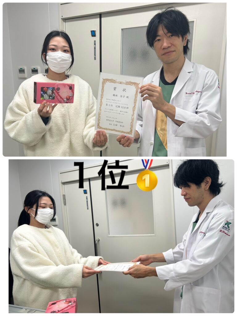 20秒台を切る強者揃いです。外科を目指している方はもちろん、そうじゃないけど自分の得意に気づいたあなた!ぜひクリクラや研修医として深掘りにやってきてほしいものですね⭐︎ お待ちしてます。